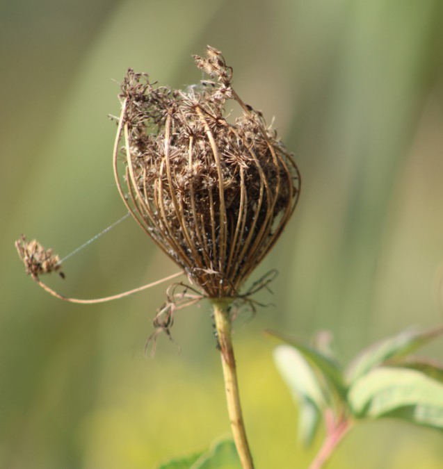 The once-frilly Queen Anne’s Lace was similarly reduced to a seedhead …