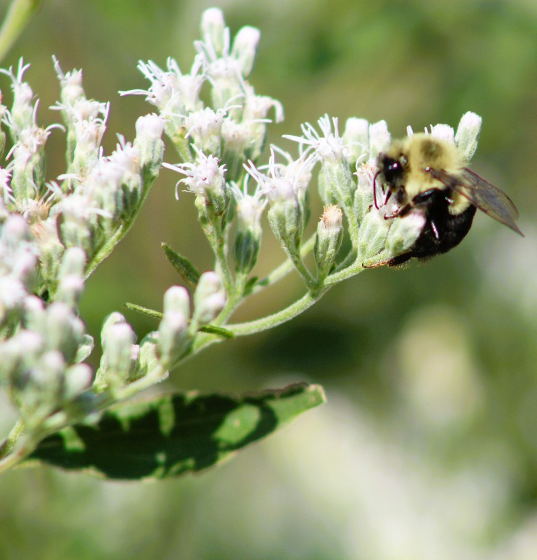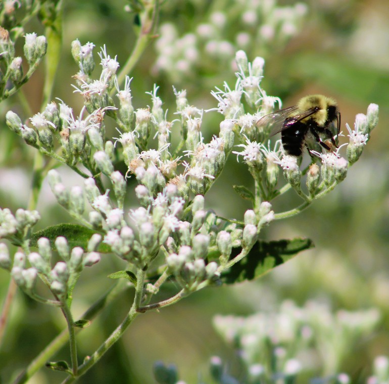There were multiple butterflies dipping and sipping amongst the Virginia Mountain Mint that day, but a bumblebee also got my attention.