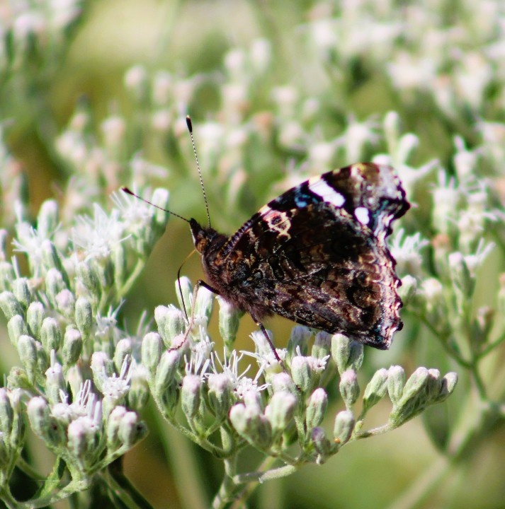This walk was taken September 9th and I am splitting it up into two posts: today’s post will focus on a new-to-me plant in this park’s Grow Zone, a plant that was a magnet to butterflies and bees, even a dragonfly. That evening, after I drafted my notes about the walk, I reached out to the Metropark’s interpretive guides to inquire about the plant’s name and learned it was Virginia Mountain Mint; Google told me it was a pollinator favorite.