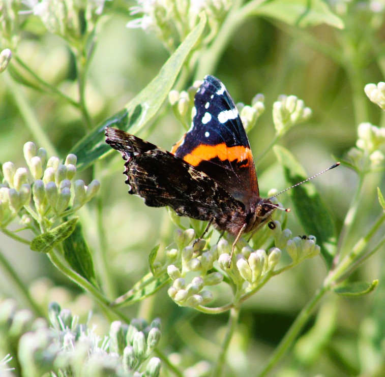 This Red Admiral butterfly flitted in and out of one plant. The pattern on its closed wings …