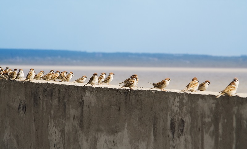As I neared Council Point Park, I passed the house where the elderly couple feeds and waters the birds on a daily basis. I first wrote about them back on July 25th in my post entitled “Offerings” (https://lindaschaubblog.net/2013/07/25/offerings/). As a general rule, each morning when I pass this house, the three birdfeeders have already been filled, and the gang of sparrows and cardinals are clustered about hungrily munching on their share of seeds on or under the feeders. But, I noticed yesterday and today there was no fresh food out and the house was in darkness. Hopefully, the couple is merely away visiting for the Thanksgiving holiday and nothing untoward has happened to them. The ever-faithful birds still showed up for breakfast, however, despite the empty feeders. I sympathized with the row of sparrows, nestled close together and lining the length of the fence near a now-bare Red Maple tree as they sat hoping for “first dibs” on the seeds. I am somewhat endeared toward sparrows since they resemble my little Buddy who has similar plumage, but they are minus that feathery cap and perpetual cowlick characteristic of a mop-top canary. I looked at those sparrows and thought of Buddy, snoozing away in the den, snuggled under his velour and Sherpa comforter awaiting Linda to come home and smother him with affection and offer up his favorite treats. I’m just a sucker for critters as you know from reading this blog, so I dipped into my bag of bread and shared a good portion of it with them. As soon as I scattered it on the ground beneath the tree where the feeders are suspended, the sparrows hopped down and started eating it. I watched their collective delight in the unexpected treat and if a thought bubble were to appear over their bobbing heads, it would say “we’ll eat this just in case our seeds don’t come later”… sometimes you just have to indulge me in my over-active imagination.