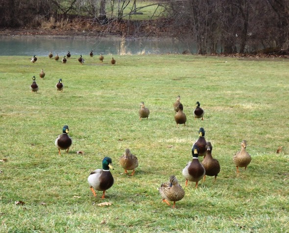 The long-awaited, much-anticipated return to Council Point Park finally happened this morning. I had planned on three separate occasions to go there, and each time something came up. I decided today I was going to make it happen. I got dressed and ready to go, then packed a Ziploc bag of peanuts for my squirrel buddies, crumbled up a half loaf of bread for the ducks, tucked my camera into my coat pocket and off I went. I waved hello and wished a few of my fellow walkers “happy new year” and confessed it was my first trip to the Park since Christmas Day. Some were incredulous over that statement, and one woman said her first day was yesterday. The grass has not yet begun to green and looked brown and dull with dribs and drabs of Tuesday’s snowfall. The Ecorse Creek’s water was rippling and sparkling as the sun glinted down on it. I stopped multiple times along the trail to toss some peanuts out in front of my feet and I was rewarded with squirrels coming out of the trees, and from behind bushes, enticed by fresh peanuts, which smelled so good that I was tempted to crack open a few myself. One gigantic blue jay spied a peanut and swooped down from his high perch and lunged for that morsel, then flew right back up into the tree in the blink of an eye. I threw some additional peanuts away from the group of squirrels that had gathered nearby, hoping to entice him to come down again, but he was wary and flew away. I felt like the Pied Piper of Hameln as I walked along the pathway, ahead of a procession of fox squirrels, who, depending on their size, either waddled behind or ran like greased lightning, occasionally darting in front of my feet hoping that I would share some more peanuts with them. My trip to the duck “landing” didn’t disappoint either. I felt like a “duck whisperer” as I stood there, a bag of bread in hand , while clicking my tongue and talking softly while asking “who wants some goodies?” as I doled out tidbits of bread. A handful of mallards approached, grabbed some bread, then dispersed onto the banks of the creek or into the sewer drain where they had been hiding before I showed up. I left my feathered friends then headed for the last portion of the lap around the Park when a few more squirrels showed up directly in my path and surrounded me, while sitting up on haunches begging. I wondered if any of them were the little guy I befriended last Fall who used to tag along behind me all over the Park. Time will tell, unless he forgot me over the long, cold Winter. The squirrels made me smile with their begging antics. Don’t dare think for a minute they don’t know that begging tugs at a human’s heartstrings, causing more frequent dips into the peanut bag and more plentiful treats for them. The lap around the Park, the first of many more to come before yearend, was over quickly and I found myself at the end of the pathway, and soon heading home. I needed that interjection of nature into my day, and I went home, lighter in heart and mood than when I departed the house a mere hour earlier.