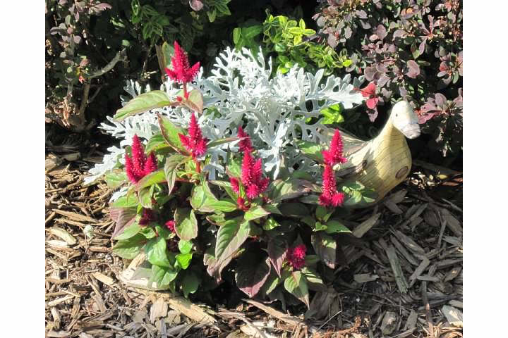 It didn’t look too inviting when I went outside on this soggy Saturday morn. The gray day and dull-looking sky sure didn’t beckon me to leave the confines of the cozy house. I really didn’t go far as it threatened to pour down at any minute, though it never did, probably because the great rain barrel in the sky was finally empty after the early morning downpour. Unlike my last post which praised the primary colors and the beautiful day, this gray day reminded me of the flower known as dusty miller … boring-looking, blah and rather nondescript. Several of the larger homes I pass on my daily trek have dusty miller plants lined up along their front gardens. The homeowners don’t yank them out when the growing season is over, and instead treat them as a perennial. I have seen these same dusty miller plants three years in a row rising phoenix-like from garden beds that are still saturated with decayed leaves and what not that has blown there during the course of the Winter. It seems the homeowners merely nip them down in the Spring and they, in turn, spring back to life. This morning I noticed all these dusty millers are still looking very sickly and bedraggled … but after all, I guess you’d look bedraggled too if you were weighted down by 94.8 inches of snow and then saturated with this incessant rain! If we ever get a little more sunshine and some warmth plus a few doses of Miracle-Gro, that will bring those dusty millers back and breathe new life into them. I wonder if recycling your dusty millers from year to year makes them become a hardier plant? They are one of the cheapest annuals available and even if you don’t have a green thumb, you simply cannot kill this plant. I use them to accent other flowers sometimes, as you see in the above picture from my garden. As to recycling your favorite annuals, many years ago I rode the bus with a woman who overwintered her bright red geraniums in a seldom-used hall closet. They didn’t look so hot when she replanted them come Spring, but she claimed they grew bigger and better than any geraniums you could buy from the finest nursery. For many years my neighbor Marge let me overwinter several hibiscuses and an ornamental mandevilla tree at her house in a sunny spot near her door wall. This trio of tropicals would drop most of their leaves and look rather pitiful over the course of the Winter. In the Spring, I pruned them back making them look really ugly, but once they got a dose or two of Miracle-Gro and the strong Summer sun to help them along, they were restored to their former beauty. When Marge got a dog and needed to use the door wall for Cody, I overwintered my plants in my basement and they were dead by Christmas. I guess Marge had the gardener’s magic touch as I sure didn’t. I can remember as a young girl, my father would dig up his canna bulbs every Fall and store them in our fruit cellar where they were safe from those bitter cold climes that we endured in Oakville, Ontario. Come Spring, he’d bury them in the soil in raised beds. They would grow huge by mid-Summer and their colorful flowers attracted alot of hummingbirds to our house. I’ve never bothered with bulbs except for my amaryllis that I mentioned in a post a few weeks ago and it never survived after the first year. I’ve got no indoor plants now, and likewise, each year my outside landscaping, like my life, gets less and less complicated.