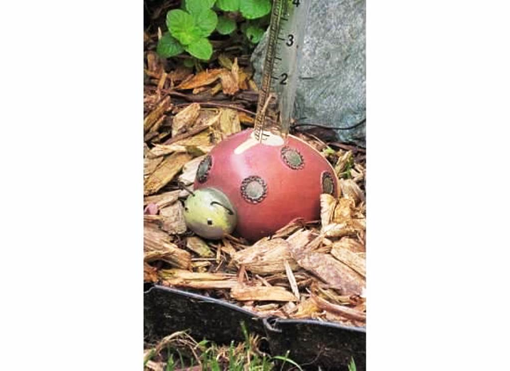 Another coolish May morn … no, wait – make that a downright cold Michigan May morn. It was 37 degrees when I left the house in the seven o’clock hour. But we were lucky – we didn’t have a freeze warning for our plants, and unlike the U.P., where people woke up to snow flurries just after the last of their 17-foot snowfall melted, at least we were not getting any of the white stuff. After last Sunday’s severe haircut to my stand of Knock Out Roses, and, after the torrential rain events earlier this week, I was curious to see how my rose bushes fared. I must admit I was almost afraid to look. Actually, the haircut was a better description of how I handled the smaller shrub roses – the larger roses were so brittle, large and unwieldy, it was more of a hack job. So, I stole around to the backyard – well, looking good … three of the four Knock Out Roses have tiny green and dark red foliage. The shrub roses have rallied back as well – no buds, but at least some greening up from the bottom. Even the large clematis looks promising, with a few green shoots and flimsy tendrils. So, that wee peek at the backyard buoyed my spirits somewhat and determined this morning’s agenda. I hopped into the car and took off for Meijer to peruse the plant rescue products. Since I am trying to have a positive outlook over my post-Winter garden disaster, I bought enough products to fertilize everything through the Summer. Twenty minutes later I came away $75.00 poorer, but hopefully holding the Rx to restore my damaged plants and bushes. As usual, I parked far away from the store to get in a meager walk back-and-forth, then I walked in and around the garden area. I left the pedometer in place while I worked out in the yard and I managed to muster two miles, which is not too bad for an errand/yard work morning. I dragged my wonder products to the backyard, scraped aside the dirt and mingled in the pellets, then covered them up and patted down the earth. Next, I moved on to nurture the holly with a similar product. At the end of all that bending , I groaned after straightening up, wishing my morning agenda had been a nice stroll in Council Point Park. I surveyed the backyard, once my little paradise, and it is looking sorely in need of alot of TLC right now. I’ve also lost half my perennials from this brutal Winter. Well, “chin up” I told myself as I put my yard utensils away. I glanced up at the thickening dark clouds. Perfect timing! The predicted rain will come to fruition and help “the cause” since it is out of my hands now, though, as of this writing I still await those promised raindrops. If the rain comes in the middle of the night while I am fast asleep, I’ll have to rely on my trusty rain gauge, pictured above, since their future beauty and fate now depends upon a little rain, much sunshine and … I’ll just defer to ol’ Mother Nature to take care of the rest.