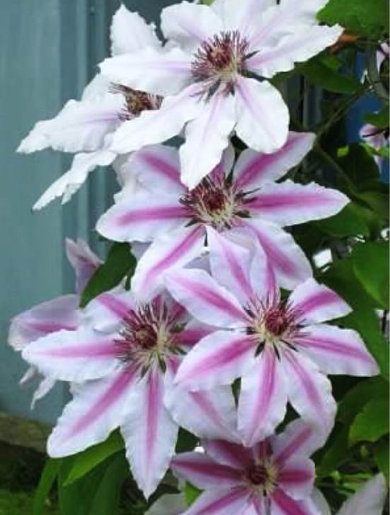 Raindrops put a kibosh on my morning agenda so I stayed close to the neighborhood, not straying all the way down to Council Point Park. When I left the house, it was lightly sprinkling but I went anyway. Even though I’ve not yet set a year-end goal, I know there will come a day when I’ll be close to achieving some monumental mile marker and I’ll lament “well I could have gone that time or another time” … so off I went. On the fourth loop around Ford Park, the rain went from a sprinkle to a drizzle so I turned in the direction of home. Actually, it was welcome since it cooled me off a bit as I had been chugging right along and it was a smidge humid and muggy … and buggy. What’s with all the mosquitoes so early in the season? Summer isn’t even here yet. So reluctantly, soon I was homeward bound, all the while scowling at the rain and the lackluster 2.50 miles walked that I saw when I looked down to check my pedometer. When I lifted up my head, what did I see as I strode up the sidewalk, but my Nelly Moser clematis laden with mauve blooms which were just twinkling away on the vine as they climbed up to the log cabin birdfeeder. I’d not been in the backyard since Saturday morning so all the buds must’ve opened at once. Suddenly the gray and gloomy sky and my attitude seemed a whole lot brighter. I guess you could say that mauve-colored twinkles wiped out the wrinkles in my Monday.