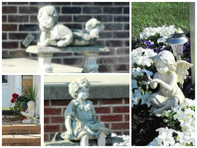 On the second loop around, I saw a woman stationed on a park bench while she watched two children cavorting on the playground equipment. The pair were rather petulant and arguing with one another and soon their raised voices turned to screams and tears. The woman, probably their mother, called out to the boys to “shut up and play” in her shrill voice which carried in the still morn. They looked up, whimpered some more, then started pummeling one another with their fists. She threatened them that they’d go home and they just taunted her from atop the tunnel and slide. By the time I finished the loop the trio was gone. Ahh … the little darlings will be headed back to school soon. In a Summer that was coolish and rainy, not offering as many days to play outside as usual, I’m sure moms everywhere are breathing a collective sigh of relief that school starts next week. The pictures above are some stone cherubs and angels I’ve photographed over the summer – they are probably the only babies and children who are well-behaved 100% of the time.