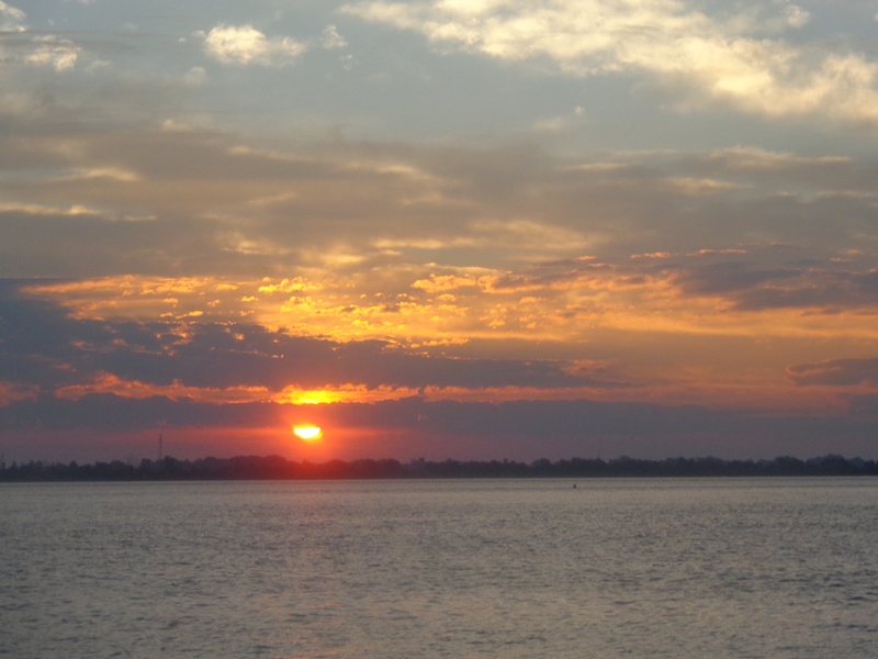 My friend and neighbor, Marge, hightailed it down to the river’s edge in Wyandotte to take some sunrise pictures – one of them is above. I secretly think Marge was also doing research to determine if that ancient mariner’s line about “red sky in the morning … sailors take warning” was true. That slightly reddish-looking sunrise might be a precursor to the storms we are expecting later today.