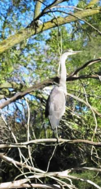 When I scurried out the door for my walk this morning, I quickly hurried back into the house to grab a heavier coat after the cold hit me like a ton of bricks. Yikes! The frost is not only on the pumpkin, but on the grass, and likely most of the annuals took a direct hit last night as well. We were blessed to have another beautiful weekend day for our Fall chores, or visits to the apple orchard or cider mill, or, perhaps to pick a pumpkin from the pumpkin patch. On a beautiful Fall day, the possibilities to enjoy the outdoors are endless, and I spent my “me time” walking to and from and around Council Point Park. I arrived just as the sun was cracking through the clouds and brightening up the sky, but it sure wasn’t providing any warmth, that’s for sure. As I passed fellow walkers on the trail, we mumbled our morning greetings to one another through frozen lips. Since it now so chilly when I walk, I am encumbered by gloves and a zipped-up jacket, so it is not so easy to access the camera if I see something spectacular that I want to share in my blog. By the time I remove the gloves and unzip the coat, I’d better hope that the subject of the picture is patient – like this guy. I’m convinced this is the same heron I saw the other day when I missed my opportunity to take his picture. It was the same old dead tree with him perched on a large branch, nearly blending into the scene. Well, I saw him and crept over quietly, hoping he would not be startled like before and just fly away. I shot a few pictures of him from the trail to ensure I had at least one photo, before I inched closer. He didn’t move, but posed prettily – well, I don’t know just how pretty he was, but I thought he was regal looking in a blah sort of way. I took more pictures, and he just sat there, so I moved on. I walked the entire loop of the Park which is two miles, and then started back at the beginning of the path once again. I passed him by and he was still in the same position, which suggests to me that he is either very old, very cold, or, perhaps he has taken ownership of this half-dead tree. The ducks were quiet this morning, maybe in deference to the Great One who was perched high above their little alcove, or maybe the water was too cold for dunking or getting more than your feet wet. They were just placidly paddling along, adding to the ambiance at the water’s edge. When the sun finally began to shine more brilliantly on the Park, the trees were bathed in bright sunlight and they looked like a large tapestry of rich Fall colors had been strung from tree to tree in beautiful hues of crimson, ochre, rust and green. I added another five miles today toward the ultimate quest of 500 miles – just 65 more miles to go.