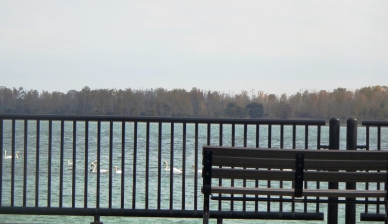 I hit the ground running today to make a quick grocery shopping trip to Meijer. It was a combo car ride and walk event, guaranteed to give the buggy a spin and glean a few walking miles for me as well, before I headed back home to work. The store was abuzz with activity as many of the clerks were putting together Christmas displays. In the holiday décor section, the dregs of Halloween gear had been hastily pushed aside to a corner to make ample room for the Christmas trees and large lawn ornaments. The individual holiday cards were lined up, ready to peruse and it’s not too early to buy a Sponge Bob Square Pants Chia Pet or a beautiful Amaryllis Bulb Starter Kit for the plant lover on your holiday list. As I entered the produce area, which had been laden down with chocolate goodies galore just a handful of days ago, it was as if a witch had taken her mighty broom and swept away all the remnants of Halloween candy – even the bags of Brach’s candy corn (which often linger long after Halloween) had already been snapped up, having been swapped with “reindeer corn”. I saw cartons of candy canes stacked up, holiday M&M Mickeys and Minnies and Santa boots brimming with cashews. I wondered anew where Thanksgiving configures into this bustle to bring forth the holiday season? Maybe it’s too early yet to dwell on the Thanksgiving bird and green bean casserole? The Christmas tree was put up at the Capitol Building in Lansing on Saturday, but the 24/7 holiday music hasn’t begun yet on WNIC. Whew! I thought maybe we flipped that calendar over to December for a minute. While I was musing how the stores usher in the holiday season earlier and earlier every year, my friend and neighbor Marge e-mailed me this picture taken earlier today during a photo expedition to the water’s edge in Wyandotte. “Simply beautiful” I wrote back, then upon closer inspection I couldn’t help but notice “seven swans a swimming”.