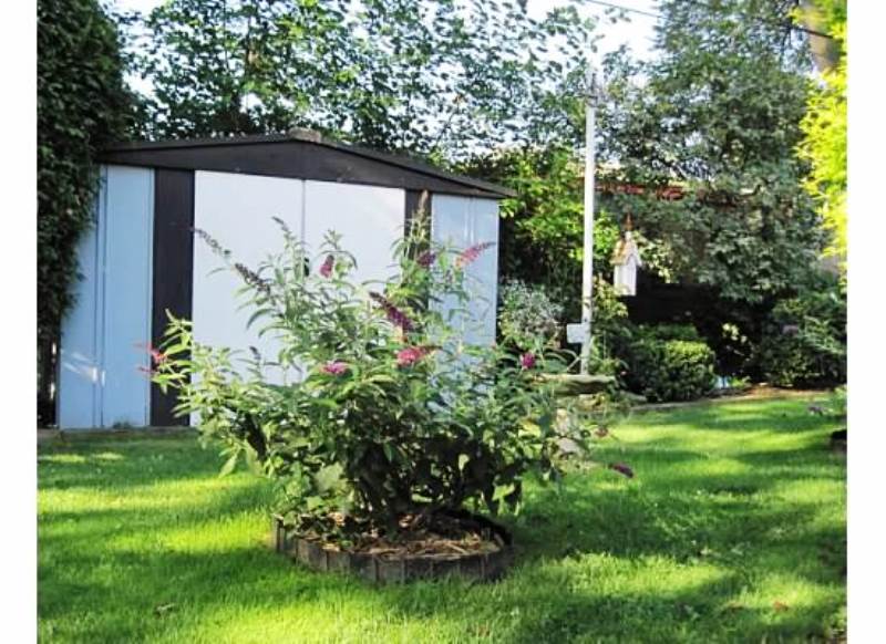 Well, it was quite a sight out back. The shed looked like a Colonial Blue beached whale, having thrust itself forward, and was squarely sitting in the middle of my backyard upside down and rocking on its roof.