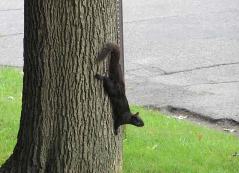 Speaking of breaks … today, a black squirrel, just like this one, captured the Comerica Park crowd’s interest during the 8th inning when he darted out into the field. All play was halted while the squirrel prowled around a bit, then went back to where he came from.