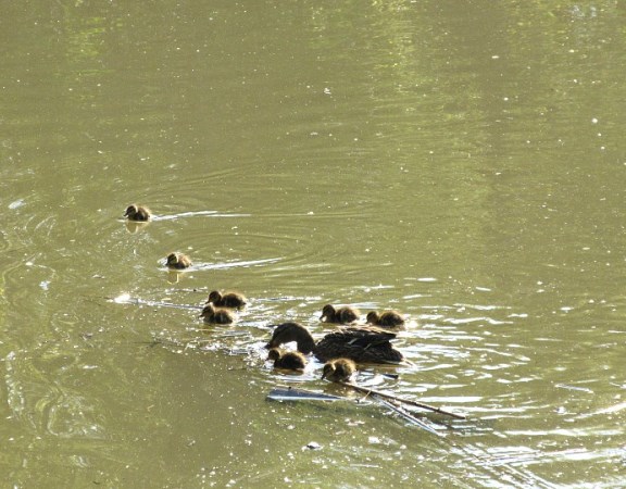 Duckling swimming lessons.