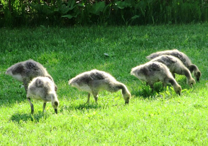 GOSLINGS EATING GRASS