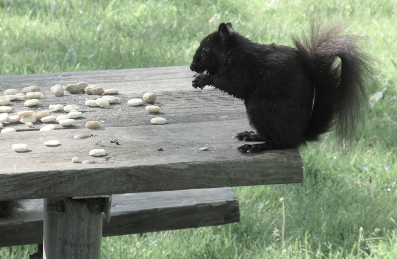 SQUIRREL ON RIGHT SIDE OF TABLE