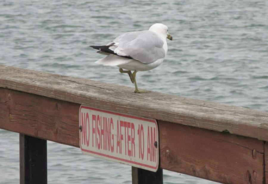 Huge fish, I love the Gull standing by the sign. He can fish when ever he wants. 🙂