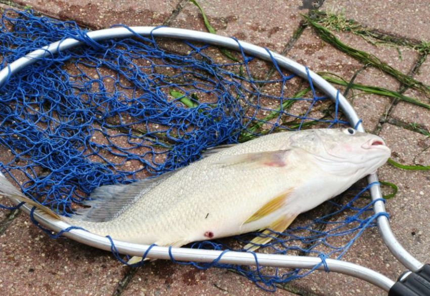 Yes, it was a big fish Sandra and I went over to take a close-up of it and that fish was still flopping around in the net and I jumped back a few feet as I thought he might land on me! You can see his fin sticking up on one side. That is a Silver Bass. I didn’t know, but I asked the guy that caught it what kind of fish it was. You’re right – the Gull can have his fish dinner anytime. He was just sitting on the boardwalk wooden railing and never made a move to find any breakfast – bet he was looking for handouts by one of the fishermen.