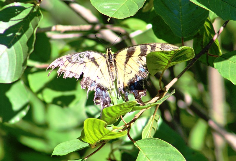 This beautiful Eastern Tiger Swallowtail butterfly pictured above apparently has not fared so well. I’ve seen many butterflies in my day, flitting around my butterfly garden, to sipping nectar from wildflowers on my treks, but I’ve never seen one with such tattered wings.