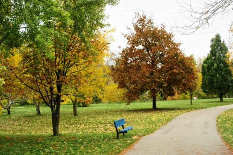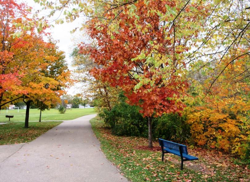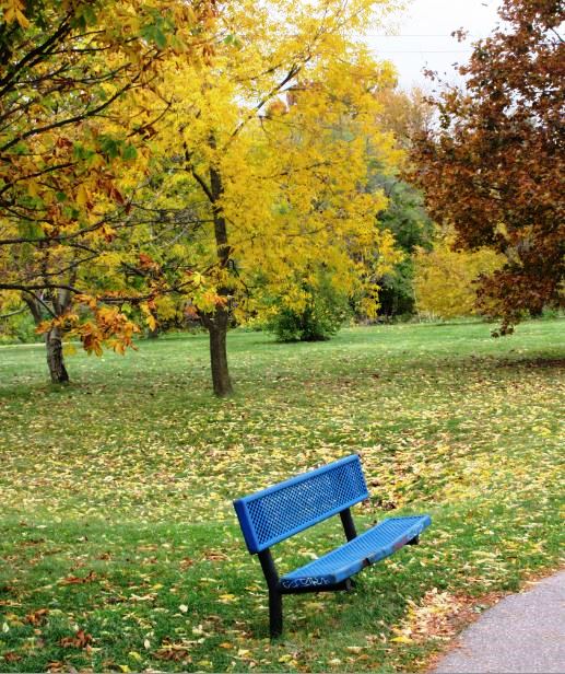 There is just something about the red and orange leaves, those colors are always so vibrant. I love the photos with the park benches, makes me want to just sit down and watch the color swirl around me. We had a bit of a wind yesterday, so that enabled the majority of the leaves to land on the ground.