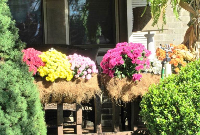 Those are such wonderful decorations, my mother used to put out the corn stalks because they had fields of corn growing out back. You don’t see them to often anymore. Very pretty decorations.
