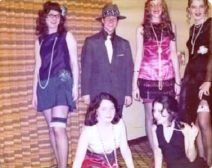 We had many good times those last two years of high school. Here is a picture of the six of us dressed up like the Roarin’ 20s for our Millionaires Party during senior year.