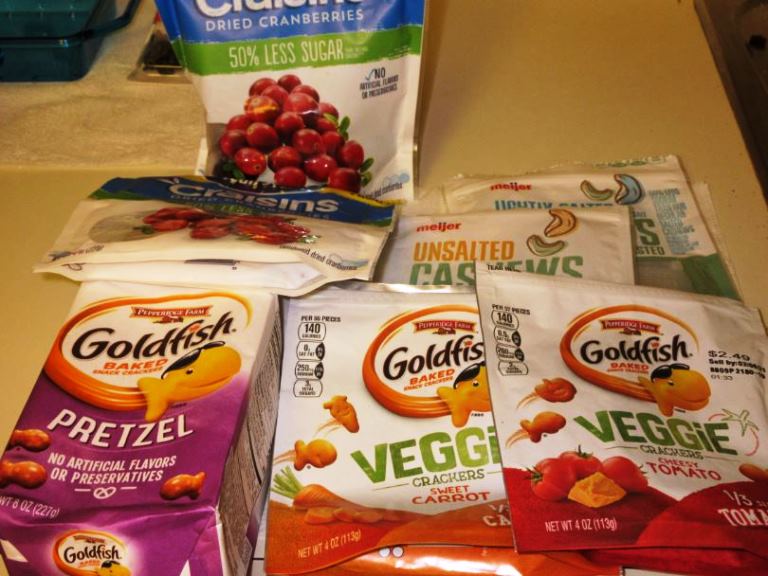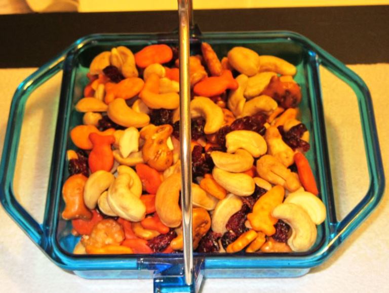 Parker surveyed the trail mix. I could imagine the thought bubble “Hmm, do I want a carrot or tomato Goldfish cracker or a cashew?” He checked out all the snacks, but moved on.