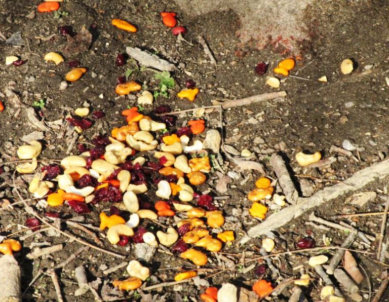 You are wonderful! Homemade trail mix for the wildlife, complete with whole cashews! And, to be so thoughtful, and so prepared, and so creative. I just love your dedication and heart for this project. There is an answer, and you will find it. Keep posting your progress, I’m hooked on this saga! 🙂