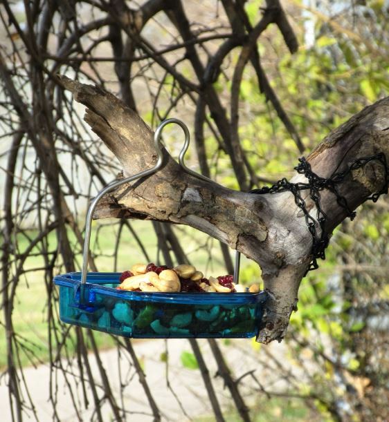 Sandra, yes – I was more concerned they’d knock it down or wouldn’t use it and it never entered my mind that someone would take it. That chain did work well around the stubby branch … it held the dish stable so the birds could have perched on either side of the dish to eat and it would not have wobbled or fallen. The trail mix is tasty – I only make it up at the holidays and decided to share. 🙂