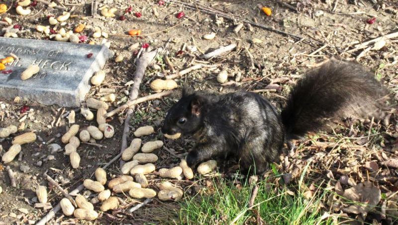 By now, a few squirrels had positioned themselves nearby, anxious to get first dibs on the peanuts, when they heard me jiggling the cellophane wrapper. This rattling of the wrapper is a ritual that would be the same as me ringing the dinner bell for the critters.