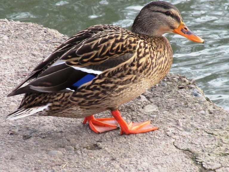 Since I took these photos, more people have encountered these ducks who are emboldened to step out of the water, go up the Creek bank and onto the perimeter path in search of food – this has become an almost everyday occurrence, except this past weekend as the Creek was frozen solid. But they never have come up close in my personal space like that day! I’m still smiling at that encounter. Ducks, unlike geese, are pretty friendly.