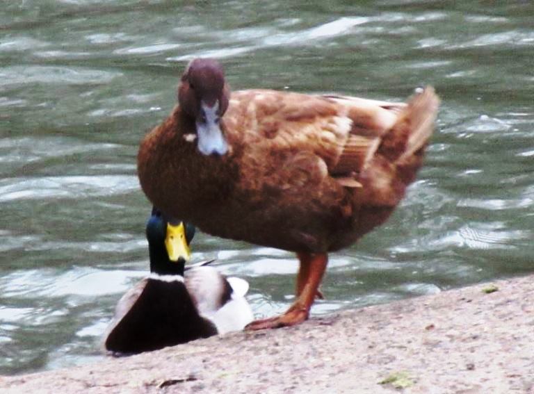Hi Nancy – I wanted to follow up your comments on this post with this info, as it is similar to what you told me. I sent the three brown duck photos to Michigan Duck Rescue and Sanctuary’s Facebook site to ask if they could ID these brown ducks. They wrote me back immediately and said they were domestic Khaki Campbell ducks. They asked if I saw them again if I would text them and let them know the location and a volunteer from the duck rescue group would come and get them. It is sad – they said someone probably just left them there as they didn’t want them anymore. I had described they were so much larger than the Mallards but they were so friendly. I’ve never seen the ducks just go up to the walkers on the path. Yes, if you had food with you and they saw it, on the cement ledge where you could throw corn on the ledge for them, but not “begging” like the squirrels do. While I saw the brown ducks almost daily for a week or so, we had temps in the low 20s last weekend and the Creek froze over and all the ducks left. It got to 44 yesterday and today, but no ducks were there this morning. I wish I had alerted the Duck Rescue group earlier, but I just believed it was another type of “wild” duck.