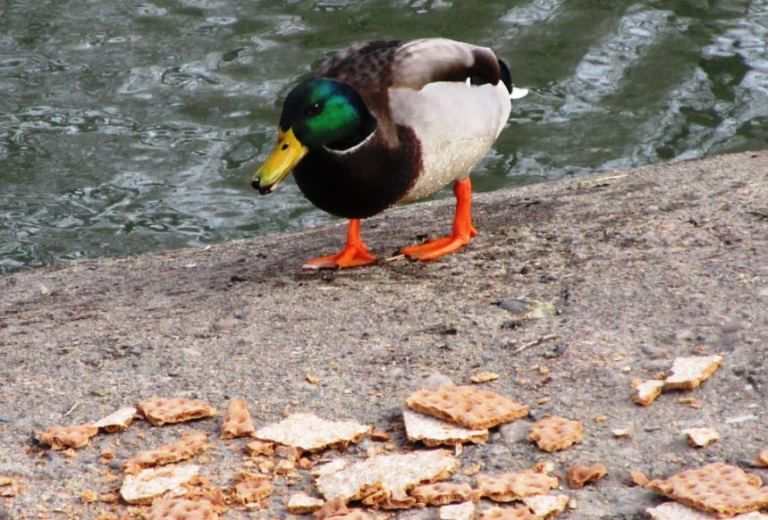 I didn’t make it back until that weekend and I brought along WASA whole-grain crackers. No ducks. Three days in a row and no ducks and finally the moon and stars aligned … ducks showed up and this time, I had food AND the camera.