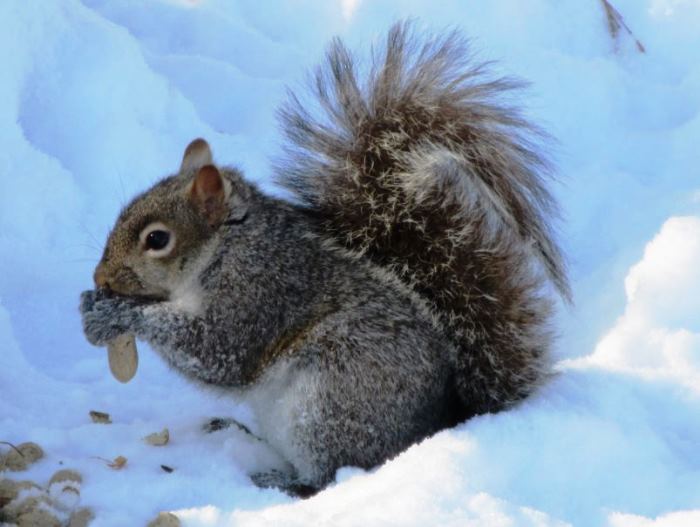 It was all good until Mother Nature got a bee in her bonnet and cranked up the ol’ snow machine. February 4th we got measurable snow and some freezing drizzle, which kept me from any trips to the Park for about a week. I had to walk in the plowed and salted street to get back and forth to the Park because it was safer than navigating icy sidewalks. We just cleared up that mess, when we got the eight-inch (20 cm) snowfall, plus a little snow every day for a week, along with the Polar Vortex. Because it was so cold, the City didn’t plow or salt the streets. Ugh!! Winter held NO appeal for me for most of February. I am sure my furry friends beat a path over to where I’ve designated as their usual feeding stations, hoping I might have been by, while I stewed and fretted over them like a mother hen, knowing their nut stash was useless beneath mounds of snow and frozen turf.
