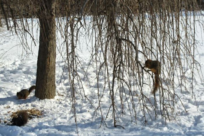 A wonderful group of photos, winter is disappearing and to see the spring flowers start is just wonderful. I have not seen any of those yet. The squirrels look happy to have a snack. 🙂