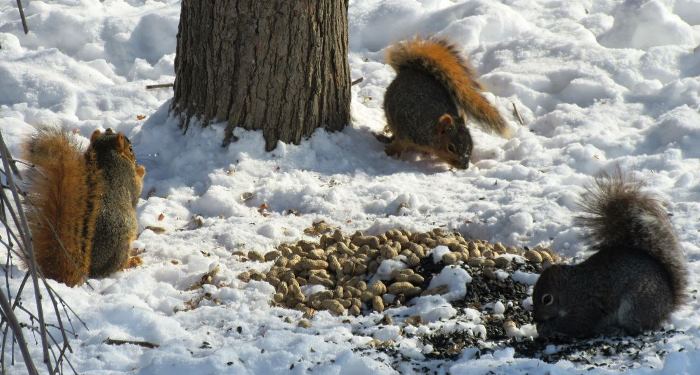 Thanks to you all the squirrels are fatter in the Spring then when Winter began! Your going to have to put them on a diet plan.