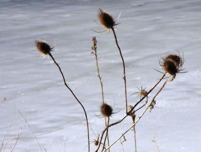 Long-dead teasels lined the Creek banks – look how bleak it looks in the heart of Winter.