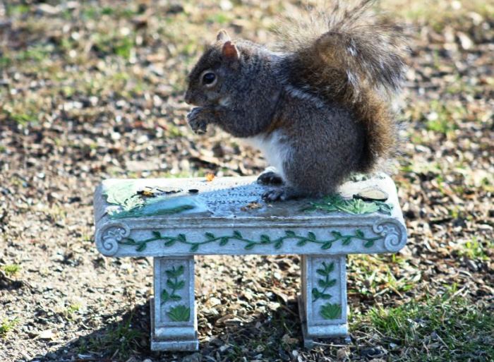 Wonderful photos, I love the little bench for the squirrels. You still have quite a variety without entering the big forest. You might get that owl photo though.