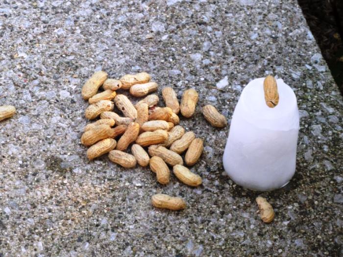 Glad you liked it Joni. I’ve been using this “popsicle” during this extreme heat and it already starts to melt from the hot temps shortly after I put it there, then it starts dripping. I open the front storm door ahead of putting the peanuts and ice block there so Two-Tone and pals know it is coming … they scope out the porch from their tree. It took a while though to get used to it, (probably because it was almost the same size as them). I use a tall Styrofoam cup to freeze it.