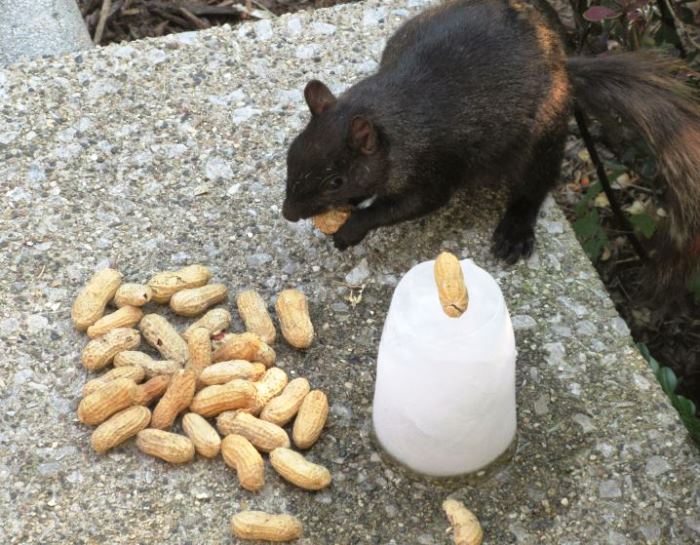Glad you liked the photos Anne. I saw a video on an animal site I follow on Twitter and the squirrel in someone’s yard was licking it like a Popsicle. So I thought I’d try it too. Two-Tone and her family took awhile to get on the ice kick, so I had to entice them to use it with the peanut on top. I’ve seen quite a few pink tongues taking a swipe or two, then I leave for my walk and it’s melted when I return. The best time to do it is in the morning as it would only last a few minutes in the heat of the day. My new trick is I put the ice in an old saucer and let it melt that way.