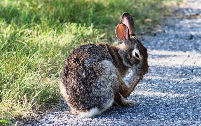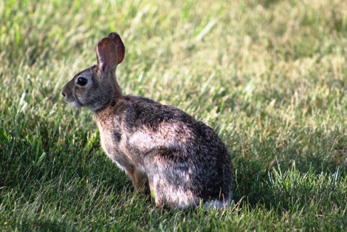 Yes Wayne – she was quietly preening and licking her paws and fur about 10-12 minutes, then took a notion to just look in the distance and bounce away. Love that little powderpuff tail which gives her the name “Cottontail” rabbit.