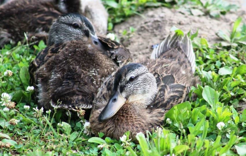 The plumage on these ducklings looked just about as dark as the brooding clouds overhead. I love how they were snuggled up with their siblings.
