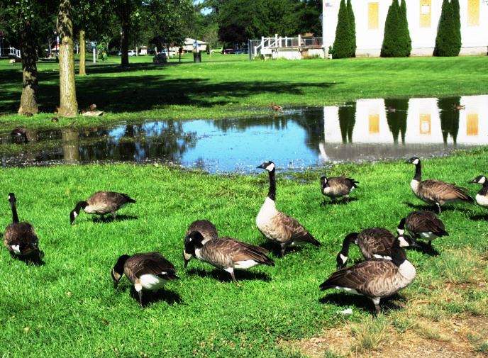 I admit I’ve had some fun riddling this post with clichés like “ducks in a row” or “weather for ducks” and yes, you might have “quacked up” or chances are you’re rolling your eyes and groaning. It’s not as if the ducks and geese at Heritage Park don’t have a place to park their feathery butts. They have beautiful Coan Lake, the man-made pond that covers three acres and has a depth of 9 to 18 feet (2.7 to 5.4 meters). Coan Lake is stocked with a variety of fish, for catch-and-release fishing, thus it provides the waterfowl residents like Mallards and Canada Geese, as well as visitors like Cormorants and Ring-billed Seagulls, an opportunity to snag a snack.