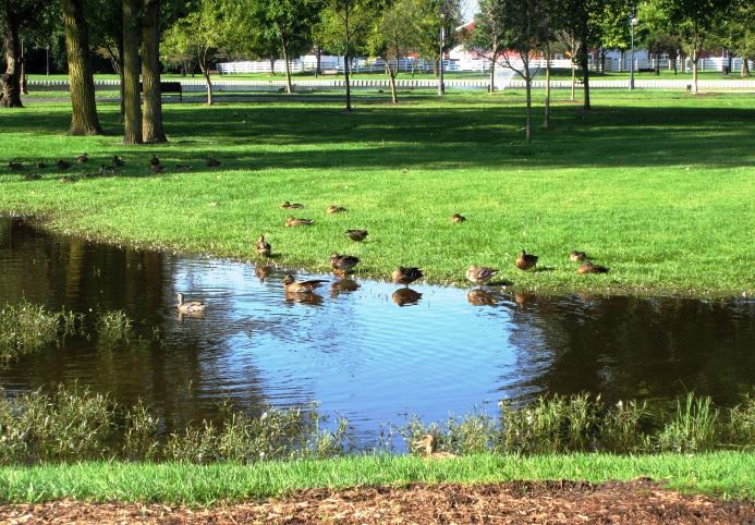 Today’s post entitled “Having one’s ducks in a row” isn’t all about ME getting out the door to walk and visit my favorite parks – instead, it’s about three posts in a row centering around Mallard ducks, with an identical venue, Heritage Park. So, what’s up with that you ask? Well, the general consensus is you all seem to like ducks, so I’ll indulge you with one more duck post. Lots of squirrel posts will fill my blog in coming months, I assure you.