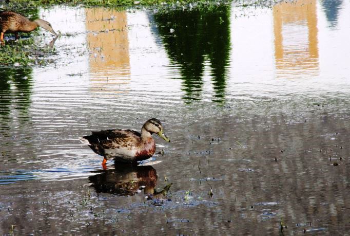 Yes, those ducks, despite their beautiful pond, preferred paddling and splashing around in this flooded area. It was kind of funny Shelley, especially when the geese showed up to horn in on the action.