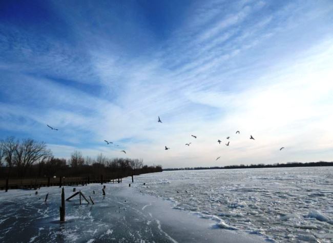 I remember you told me you used to walk past it near your workplace if I recall correctly and in good weather there were geese. To me, it is amazing to see this and I was there during a Polar Vortex a few years ago and the big waves had frozen in mid air and the square slabs of ice broken up by the Coast Guard ice cutter ship were banked up on the shoreline like dominoes. The Detroit River is big and a fast current to freeze up like this.