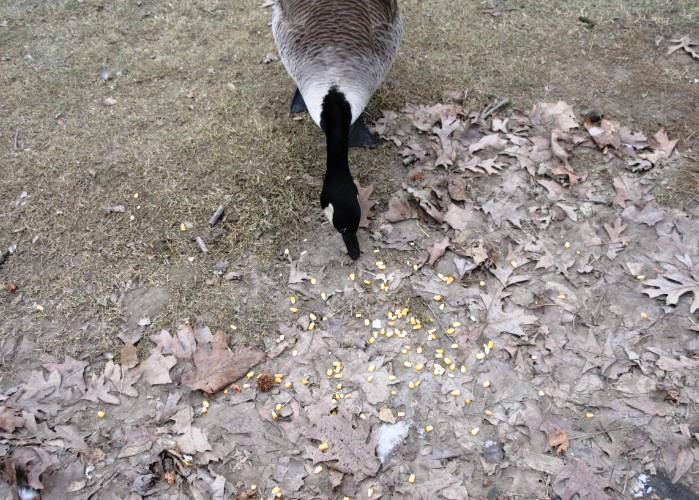 I did have fun putting this post together Wayne. I took a few pictures of the geese and ducks before the corn feasting began and when I looked through the photos I told myself I could spin this into a tale about football. I have spoken to other people who regularly feed the geese and ducks; one was a couple I wrote about and they bring a five-gallon bucket of corn they roll down a ramp from their van every afternoon and then I met Elaine who brings corn for the waterfowl and a pound of peanuts for the squirrels as she walks there every day. I don’t guess there is much for the geese and ducks to forage this time of year.