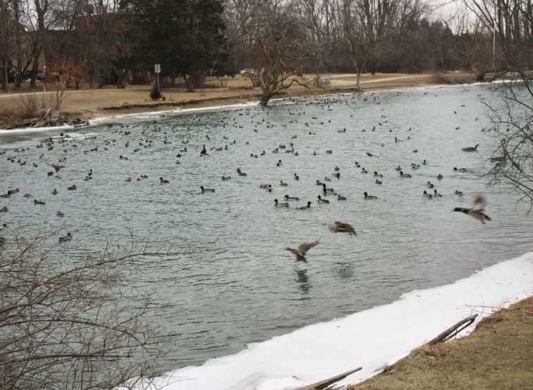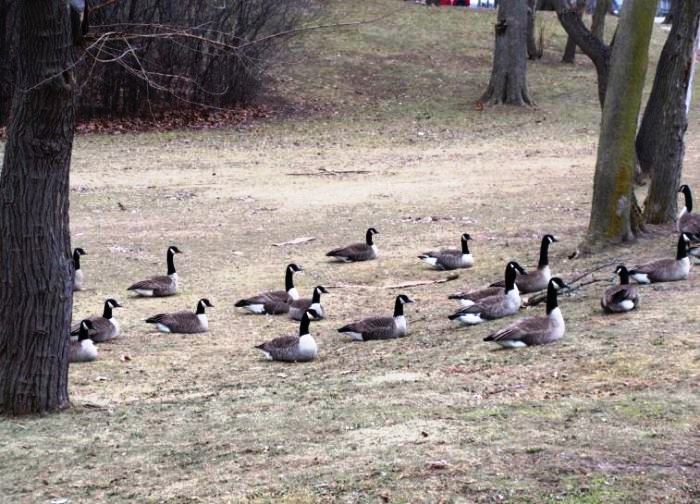 I thought it was nice too Kate. I will bet that the guy regularly feeds them as I saw the geese resting when I got ready to walk down the hill and took that picture – all of a sudden they all got up and starting walking up the hill as the guy drove up so I took that picture. I have spoken to others who make a daily trip to this Park and bring corn. One couple had the corn in a five-gallon container in their van and they have the container on wheels and roll it down a ramp. The ducks, especially the large white Pekins, saw them pull up and they swung open the doors and the ducks ran up the ramp to eat corn out of the container, before the guy rolled it down to spread it out for the rest of them. Warms my heart seeing this. Elizabeth Park is bad for the goose poop, but no signs. They have as many waterfowl on the other side of the park. Heritage Park has signs everywhere forbidding feeding them. It is their right as much as ours to be there as icky as it gets sometimes.