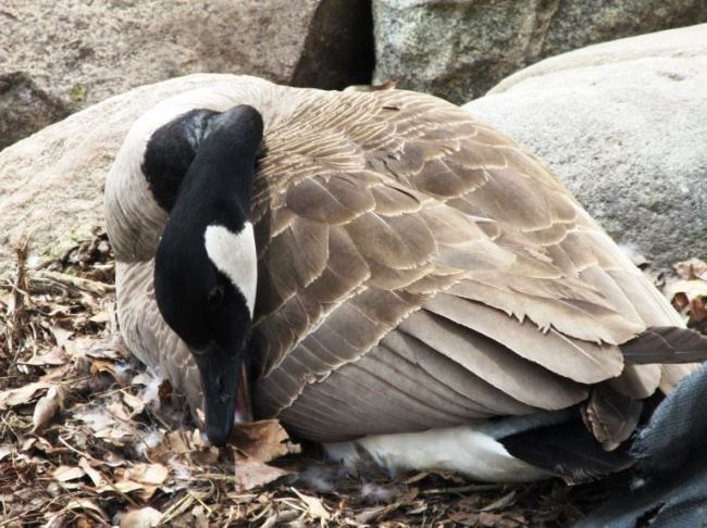 Your stone age goose mama is very lovely! Good thing she lined the nest with something soft to cushion her from those cold, hard rocks. I can’t remember if you got pictures of her goslings last year? I was delighted to learn that Canada geese mate for life and return to the same nesting site every year.