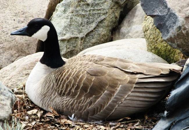 Your stone age goose mama is very lovely! Good thing she lined the nest with something soft to cushion her from those cold, hard rocks. I can’t remember if you got pictures of her goslings last year? I was delighted to learn that Canada geese mate for life and return to the same nesting site every year.