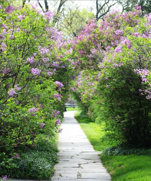 What a nice bench to sit on and path to walk on to enjoy all the beautiful lilacs. 🙂