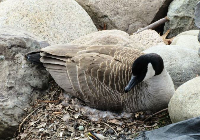 Yes, this does not look like the comfiest place to sit for a month’s time does it Sandra? There was a goose on a nest in the same place last year – perhaps it is a great lookout spot for predators and no humans are walking near the boulders so it is deemed safe